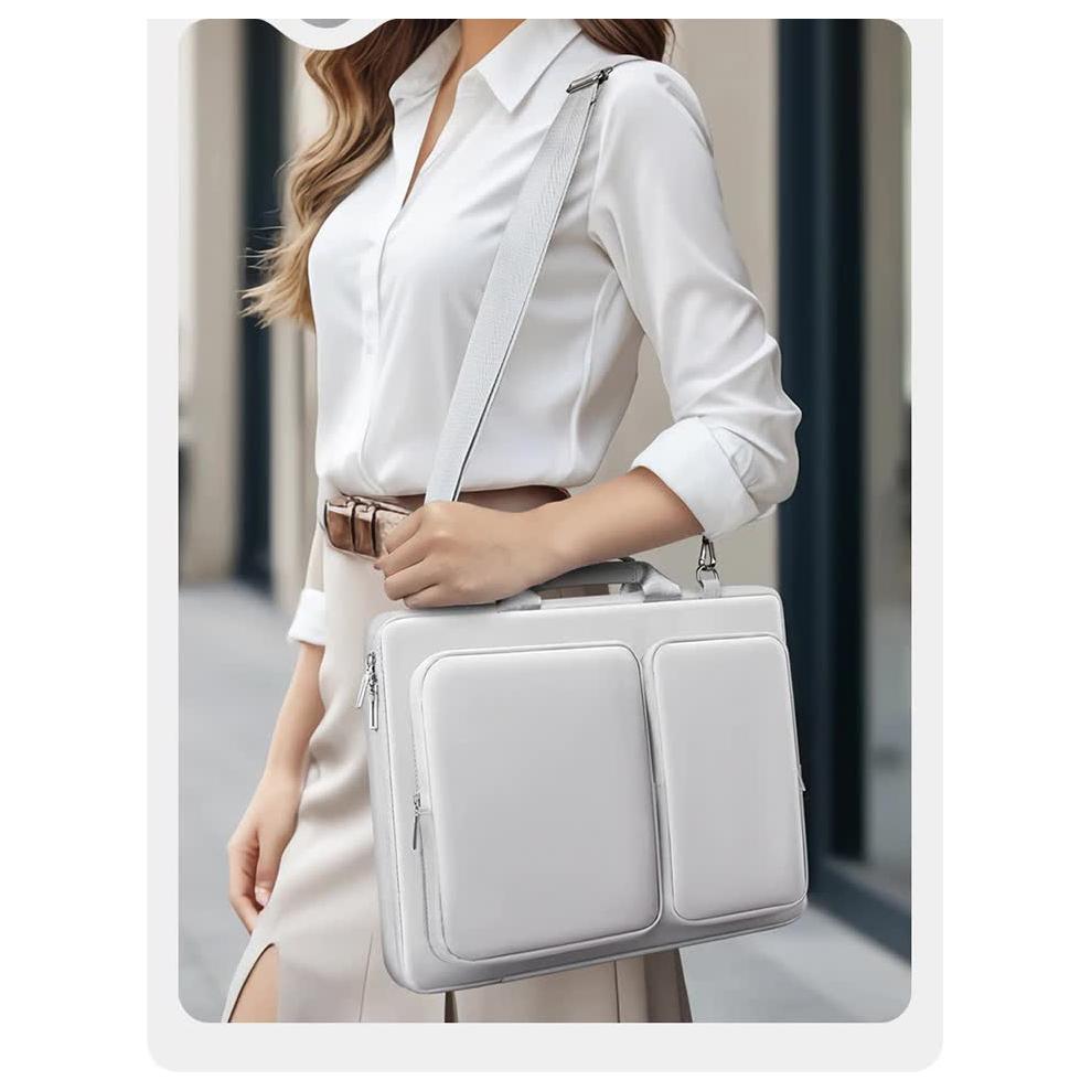 Protect your laptop and accessories in style with this slim and durable laptop bag. Designed for 15.6-inch laptops, it features 360° shockproof padding, multiple compartments for accessories, and a trolley strap for convenient travel. Whether you're commuting, working, or traveling, this bag combines functionality and sleek design to meet your needs.