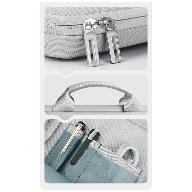 • Two front pockets with dedicated compartments for chargers, cables, pens, and other accessories.