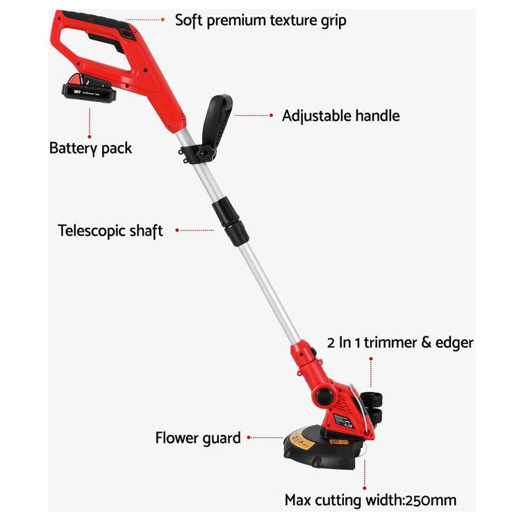 Discover the ultimate in lawn care with our Giantz Cordless Line Trimmer. Lightweight with an adjustable handle for comfort, it features a hands-free rotatable head for effortless edging. Enjoy its powerful motor, durable cutting line, automatic spool system, foldable handles, telescopic design, and safety from debris. Ideal for your garden!