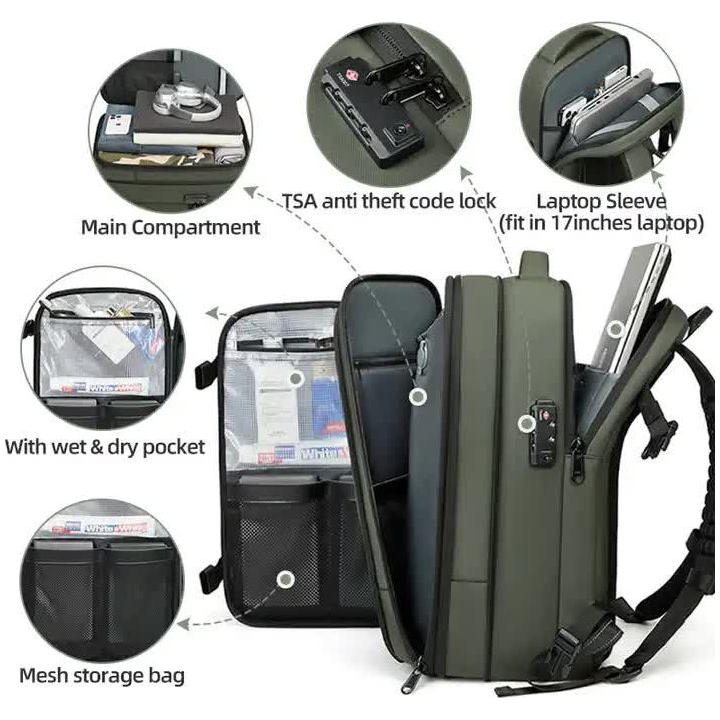 - Multiple Compartments: Organized storage for laptops, clothes, headphones, and other essentials.