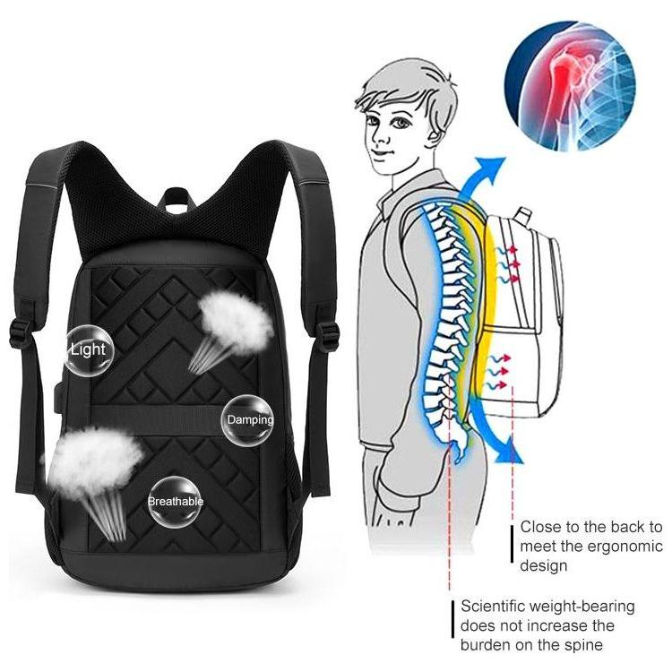 • Multi-layer honeycomb mesh elastic foam back pad for breathability, decompression, and shock resistance