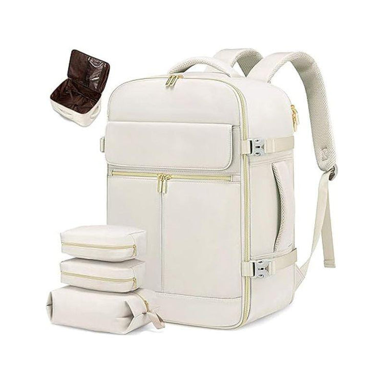 Off White 40L Large Capacity Travel Business Backpack with Expandable Compartments, Including 2 Toiletry Bags and Shoe Bag - Durable Oxford Fabric