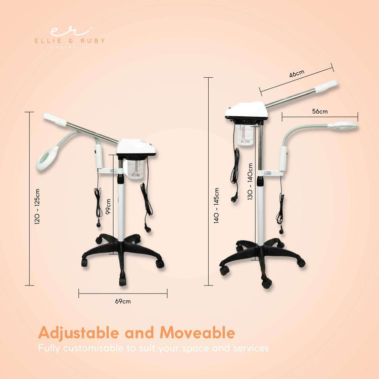 A multifunctional tool for any spa or salon, the 2-in-1 Beauty Machine is a facial steamer with attached 2.5x magnifying lamp.