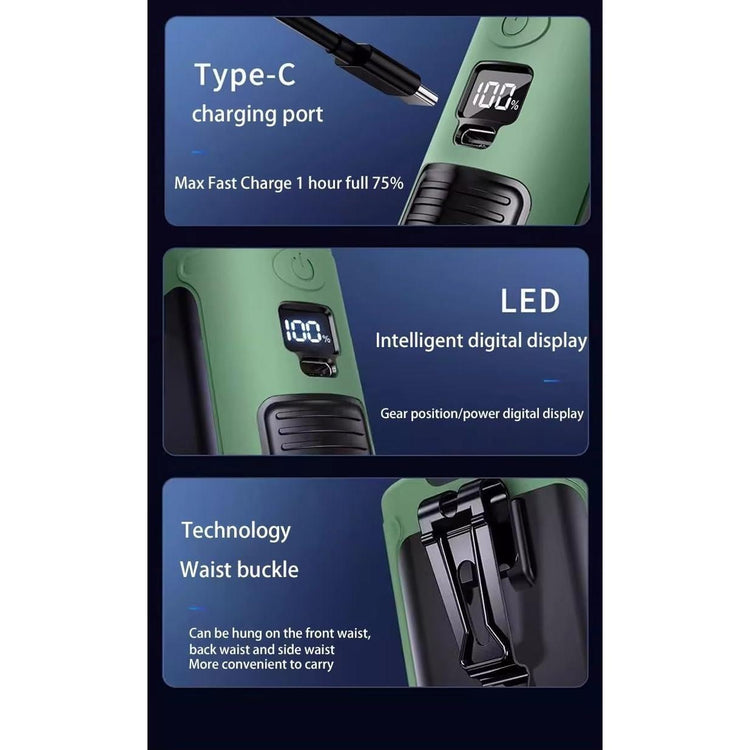 10000mAh Portable Outdoor Waist Fan Hanging Neck Strong Wind with Power Bank LED Lighting for Emergency Sports Outdoor Working (Green)