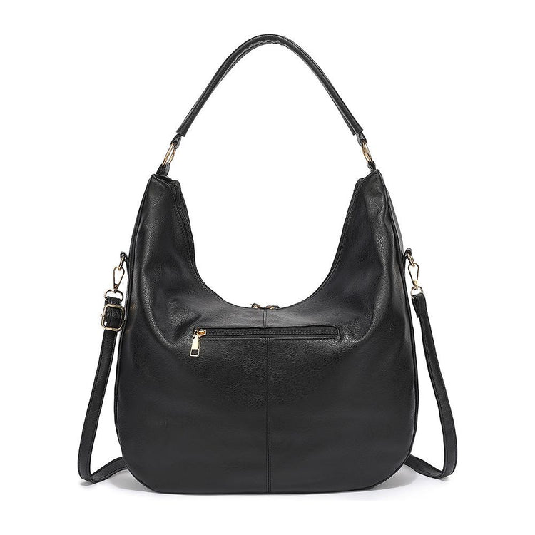 Black Faux Leather Hobo Bag - Large Shoulder w/Coin Purse