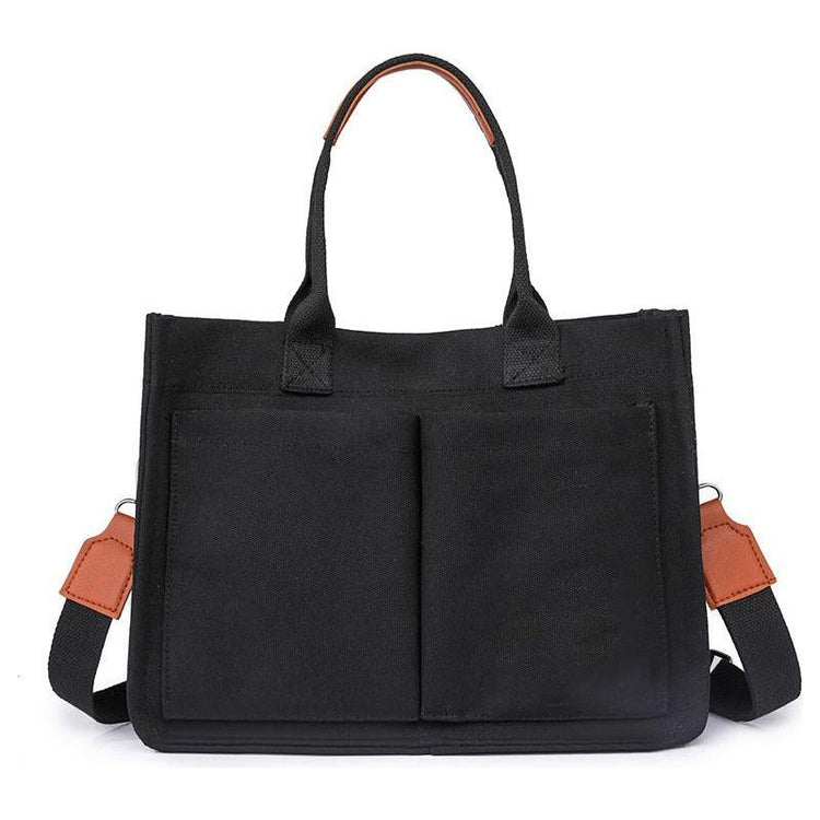 Black Stylish Canvas Briefcase Tote Bag with Large Capacity for Women