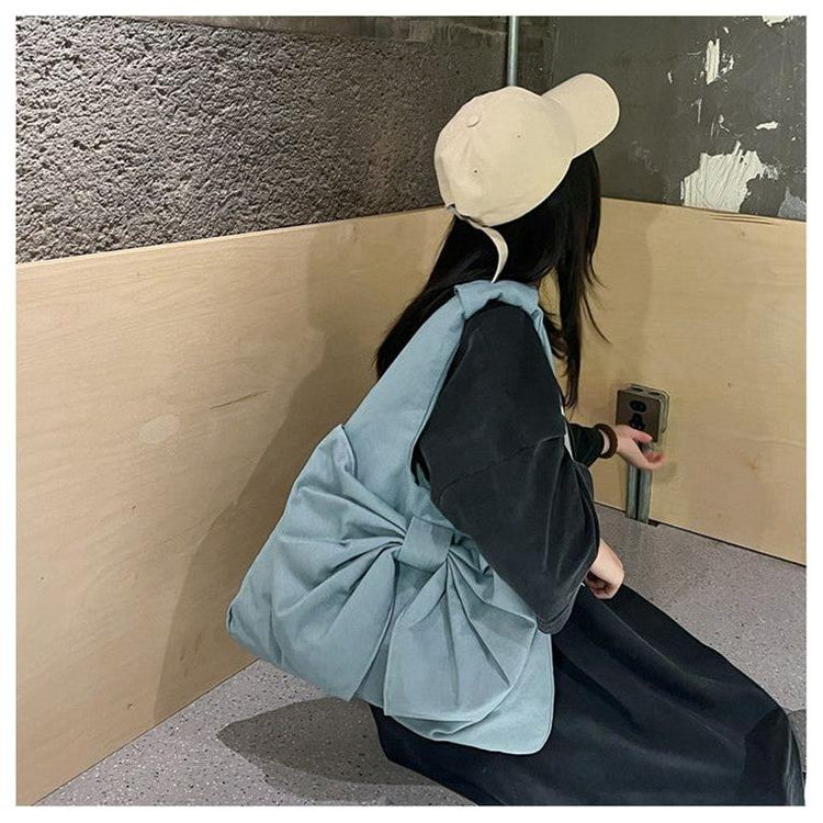 Women’s Bowknot Shoulder Bag – New Sweet Style, Large Capacity Canvas Tote Bag, Commuter Single Shoulder Handbag