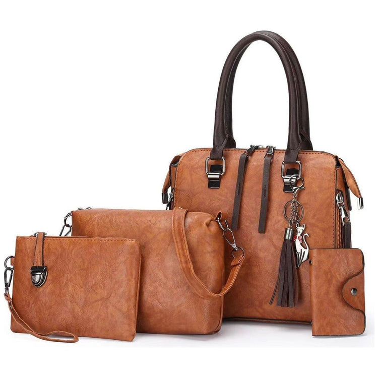 Brown 4-Piece Women's PU Leather Tote Bag Set - Vintage Handbag, Shoulder Bag, Clutch, and Card Holder - Lightweight Design