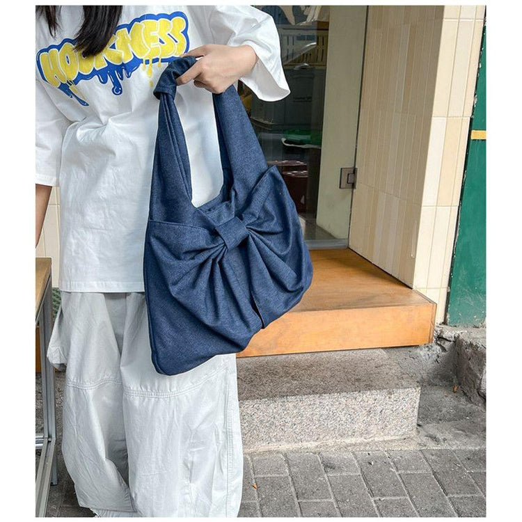 Women’s Bowknot Shoulder Bag – New Sweet Style, Large Capacity Canvas Tote Bag, Commuter Single Shoulder Handbag