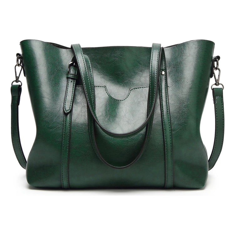 Elegant PU Leather Tote Bag with Detachable Strap - Green