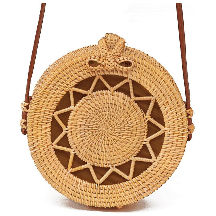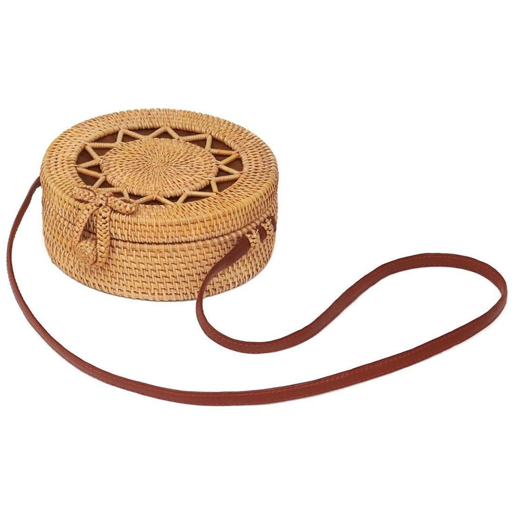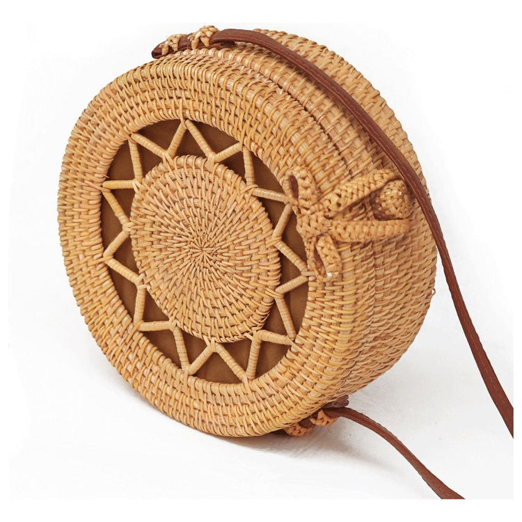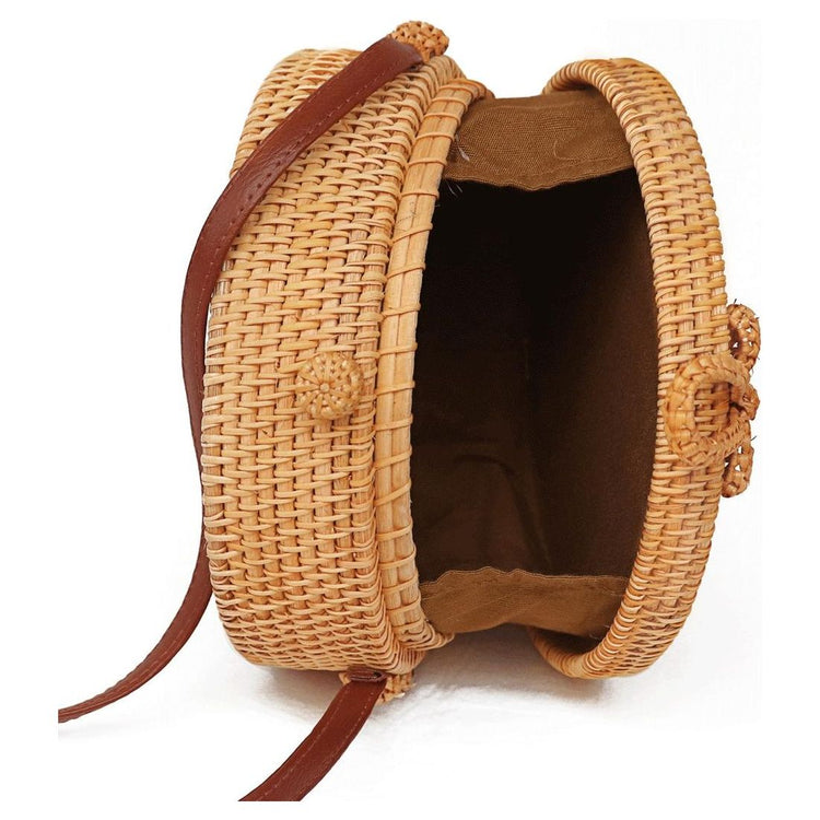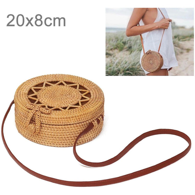 • 1 x Handmade Rattan Bag Flower Pattern Autumn Design Vintage Art Beach Diagonal Bag 20X20X8Cm