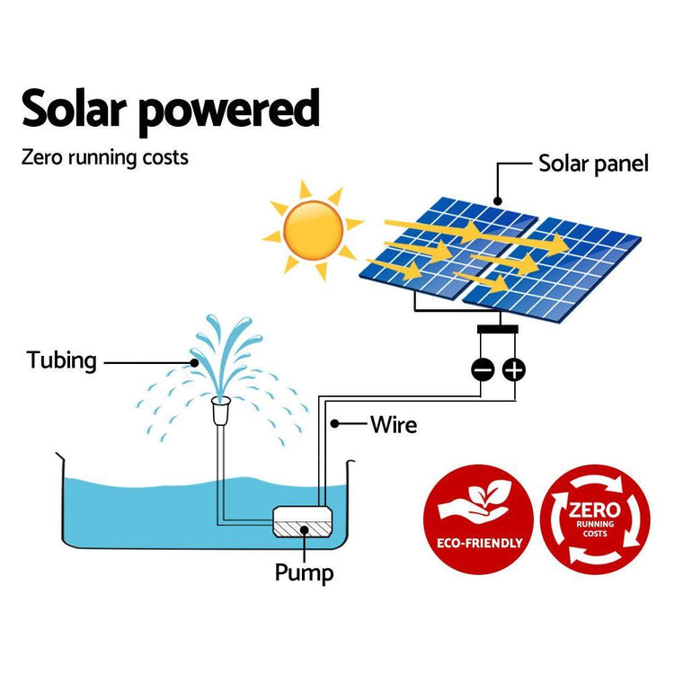A joyous addition to your garden. Our Solar Powered Fountain can make your garden a simply stunning and mesmerizing place for everyone. Not least, with its energy drawn from the sun, your fountain is practically running at zero costs. Featuring a brushless DC pump, the fountain can pump up to 2.2m (7.2ft) high of dazzling water at a flow rate of 1100 litres per hour. And it looks good, indoors or outdoors. The solar panels are dual polycrystalline, which means that you get better energy conversion to run the fountain effortlessly. Better still, you can mount the solar panels anywhere within a 5m radius of the water feature. The entire unit comes with all the necessary fittings and accessories for an easy, no-hassle set up.