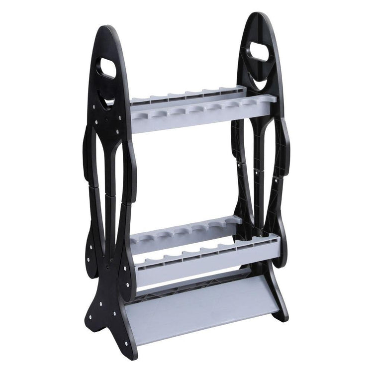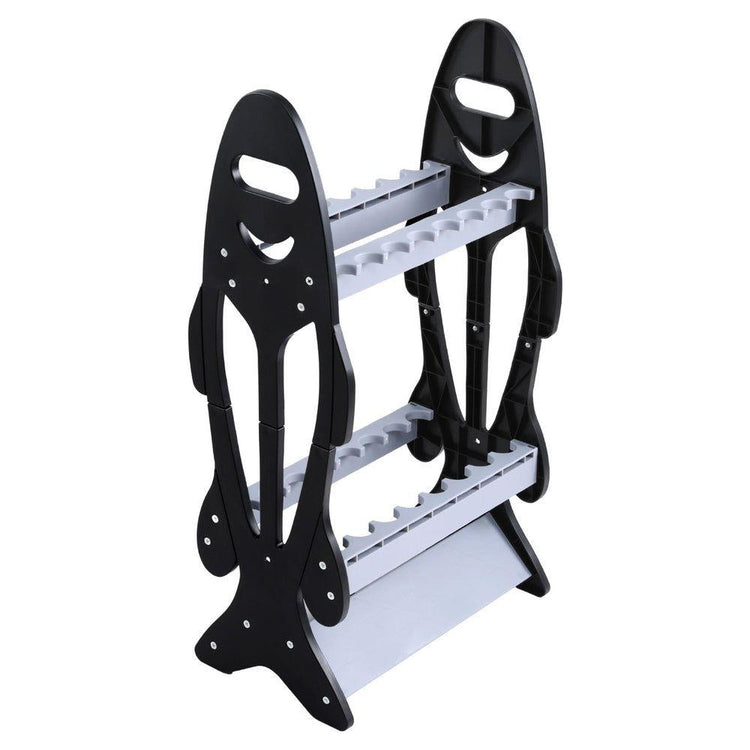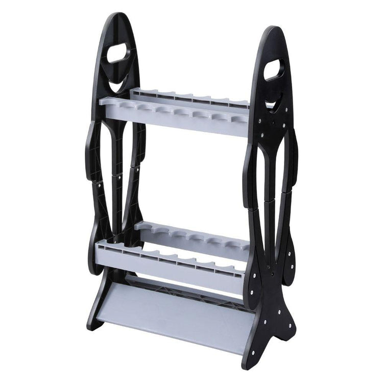 Double-sided stand holds 8 rods per side
