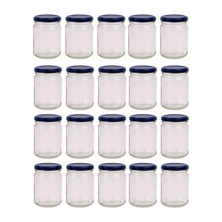 20x 150ml Flint Glass Jars with Black Metal Twist Finish Lids.
