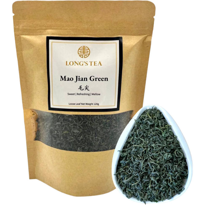 Profile:  Mao Jian Green are know as one of the finest green tea produce using tea buds. It is characterized by its thin, tender evenly shaped tea and cover in abundant white hair.A delicate aromatic tea with a sweet mellow taste note and finish with long lasting aroma.
