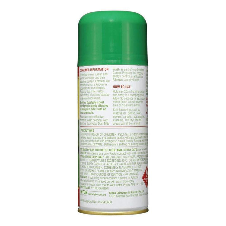 200g Dust Mite Spray Eucalyptus Bosisto's Bedding Fabric Mattress Carpet Pillows