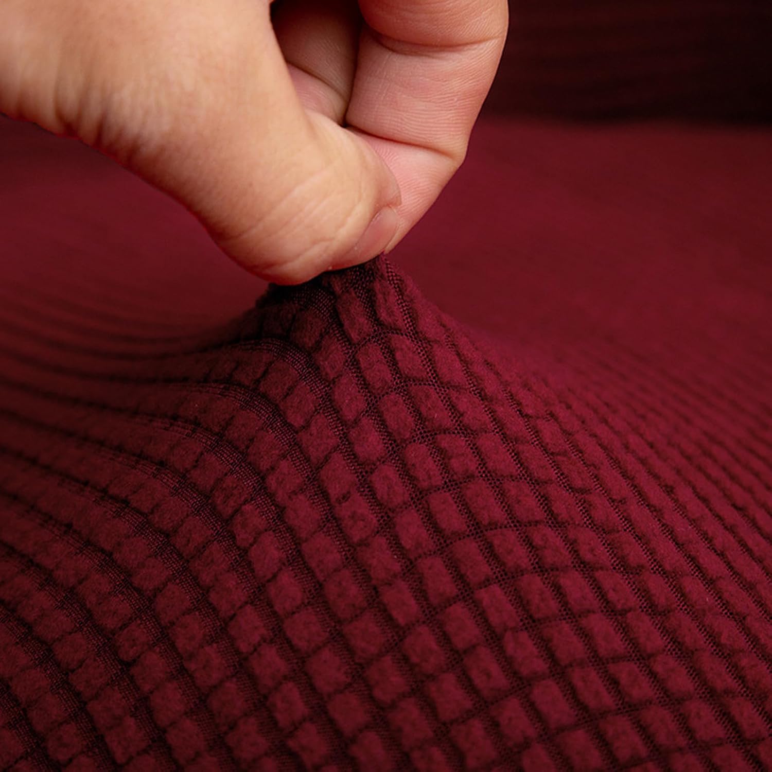 92% Polyester and 8% Spandex. Soft, no fading, durable as well as high stretch, stay in place. Keep your furniture brand new. Perfect for homes with kids and pets.