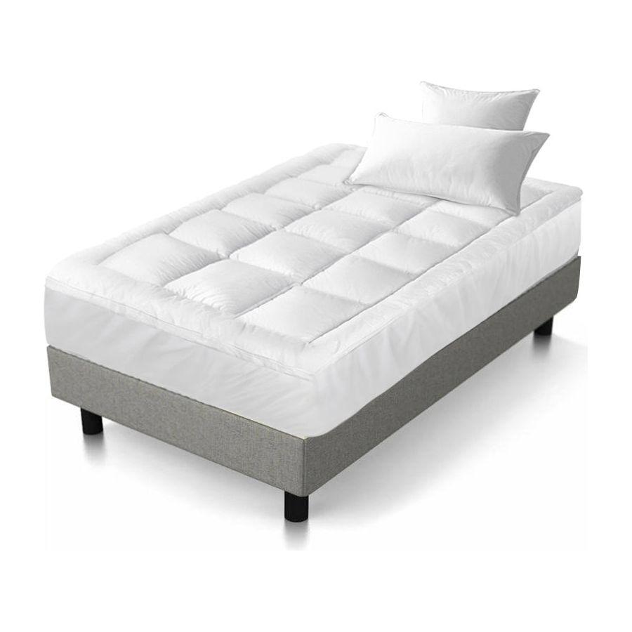 Featuring 1000gsm bamboo polyester blend fibre filling housed in a microfiber polyester fabric cover, our 5cm thick topper is overly generous with softness and comfort. The topper actually comprises several pockets that are neatly sewn together to ensure that the filling does not spread and go lumpy. Plus, the fully-fitted45cm elastic skirt around the topper also ensures that the topper stays in place at all times.