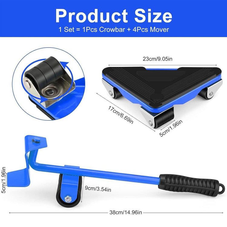 Move heavy objects effortlessly with our five-piece moving tool set. Designed for both home and professional use, this set makes lifting and relocating heavy furniture, appliances, and other bulky items a breeze. Say goodbye to back strain and floor damage, and enjoy a hassle-free moving experience.