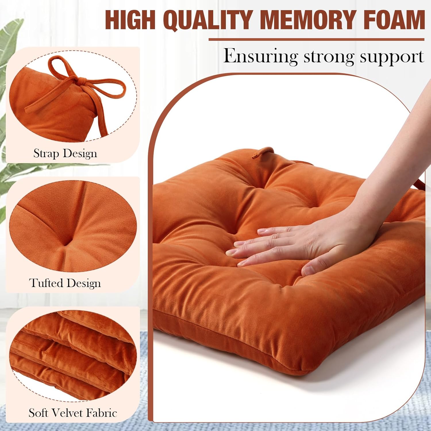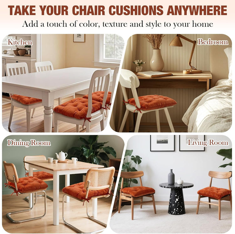 Memory Foam Chair Cushions Set of 4, Thick Indoor Seat Cushions for Dining Chairs Tufted Seat Pads for Kitchen, Dining Room, Office, (Orange,15.5"x15.5"x4")