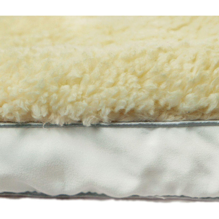 Introducing Super Soft Sherpa Fleece Top - Stay Warm & Cozy with this thick layer of hypoallergenic polyester. Experience ultimate comfort while safeguarding your mattress with 1600GSM Sherpa Winter Mattress Topper by Ramesses. In white and cream colour tones.