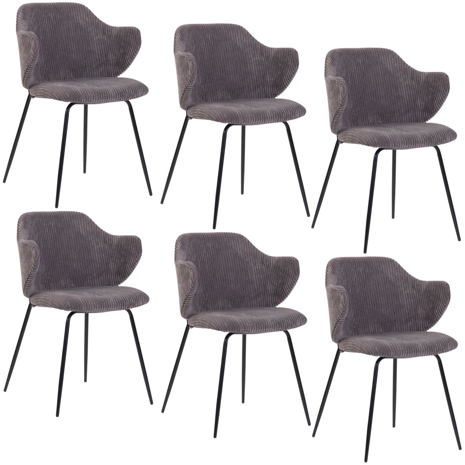 Set of 2 Dining Chairs with Corduroy Cord Fabric in Dark Grey Lincoln