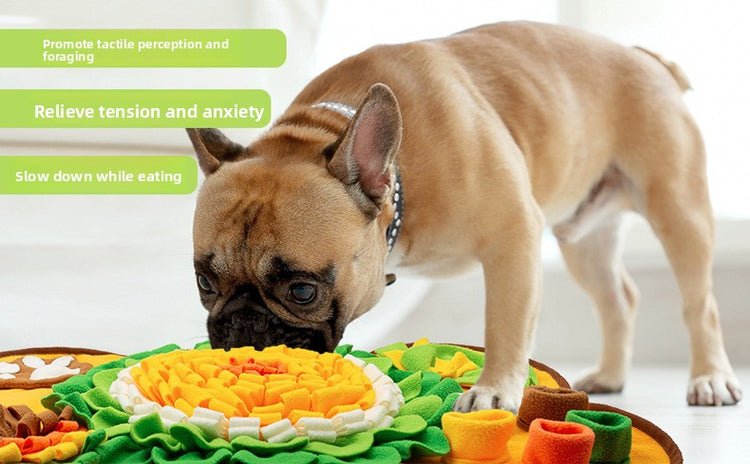 - Mental Enrichment & Foraging Training: This mat features multiple hiding spots, including a large central flower, fabric strips, and cups. It encourages your dog to use their nose to sniff out treats, stimulating their brain and satisfying their natural foraging instincts.