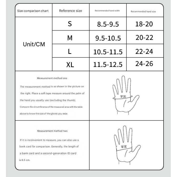 Note: To ensure maximum comfort and performance, please carefully measure your hand circumference and compare it to the sizing chart before making your purchase.
