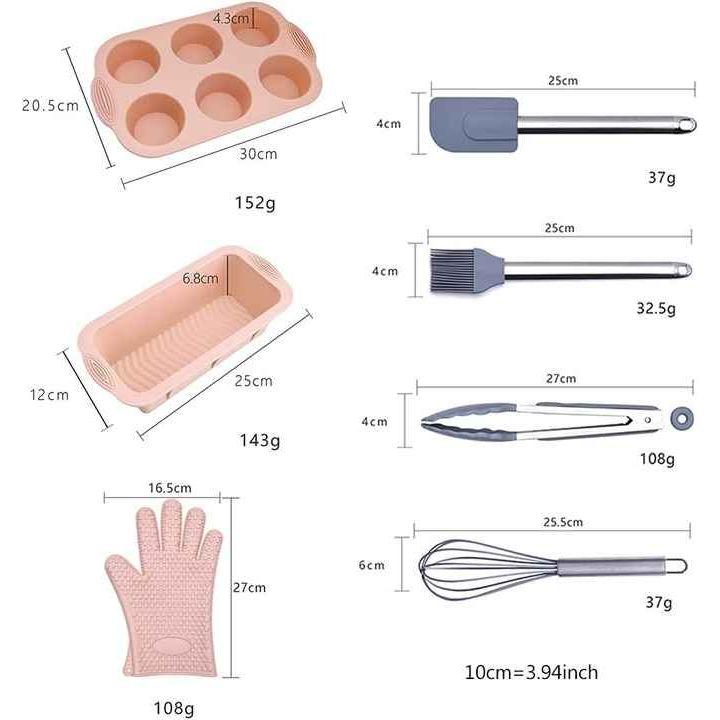 Pink 7-Piece Silicone Bakeware Set - Everything You Need for Home Baking