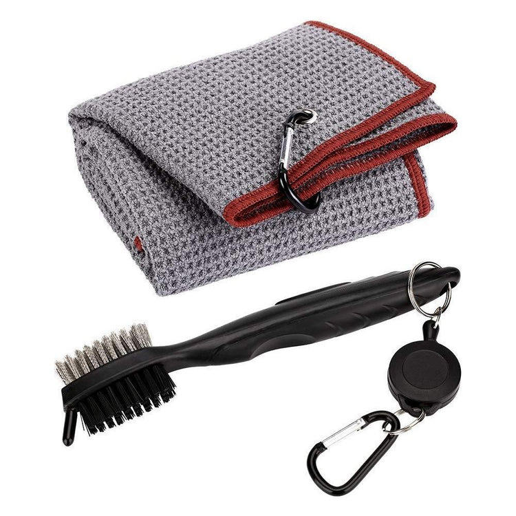 Club Cleaning Brush & Hook Towel Golf Set - Compact & Convenient - Black