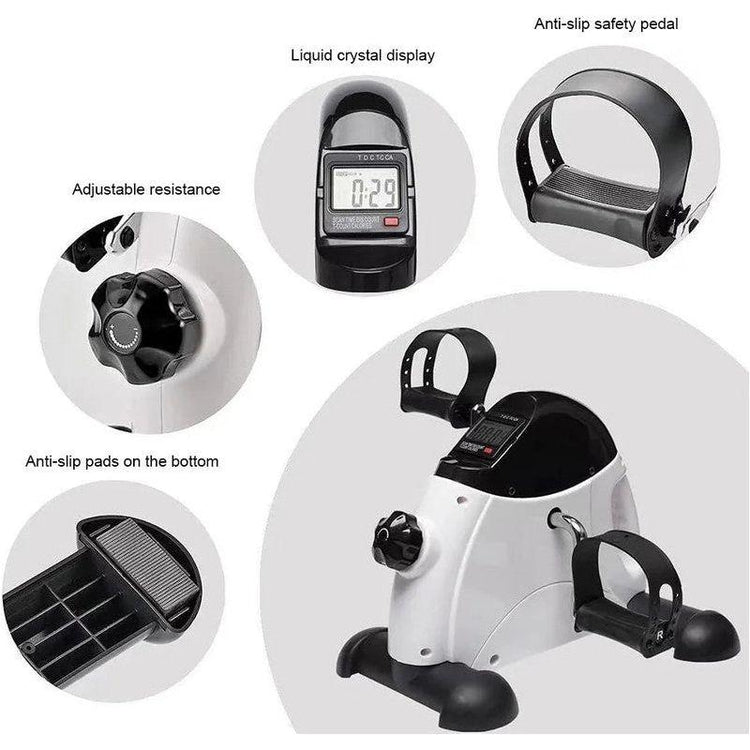Description: The NNEOBA Mini Exercise Bike is your perfect fitness companion for home workouts. Designed for both arm and leg exercises, this compact and portable pedal trainer offers a versatile workout experience. The high-quality ABS pedals feature an anti-slip design and foot straps for a secure grip, while the non-slip base ensures stability during use. Track your progress effortlessly with the multi-function LED display that shows steps, exercise time, and speed. With adjustable resistance levels, you can tailor the workout intensity to match your fitness level, making it easy to build endurance and burn fat. Whether you're at home or the office, this mini exercise bike lets you stay active anytime, anywhere.