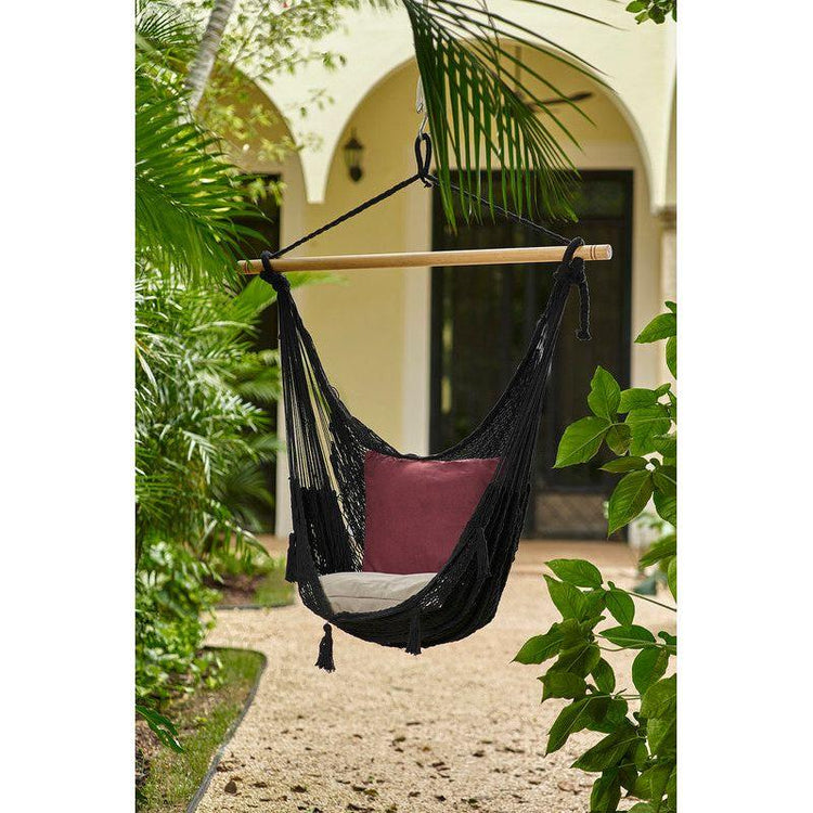 Our Mexican hammock chairs are just amazing with the bonus of a comfy back support, difficult to find elsewhere. Because they're extra large you can relax vertically or horizontally, anywhere you want, you choose.