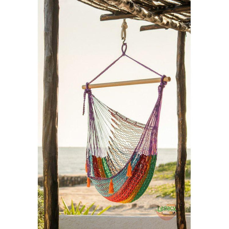 Mayan Legacy Extra Large Outdoor Cotton Mexican Hammock Chair in Colorina Colour