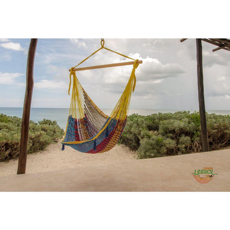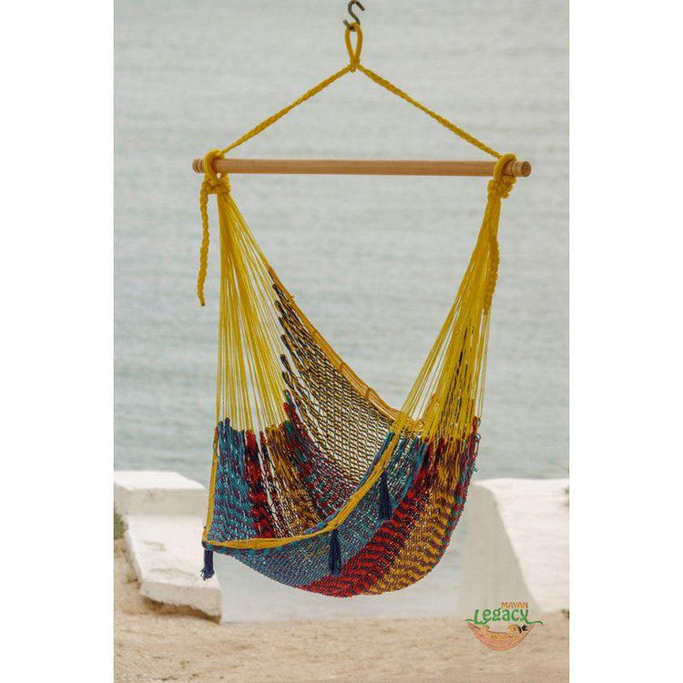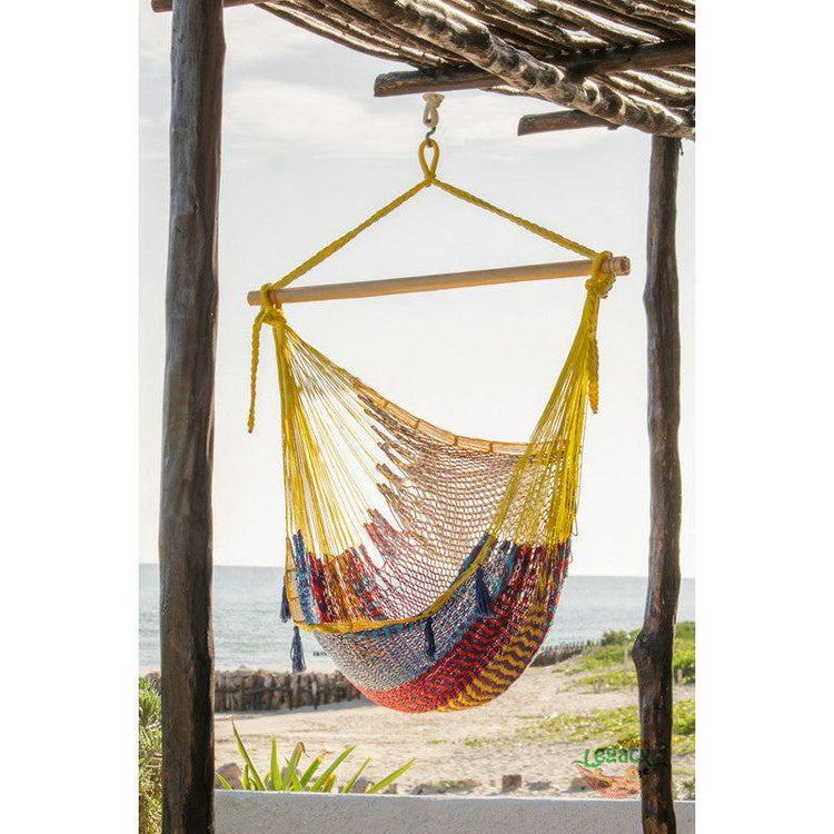 Our Mexican hammock chairs are just amazing with the bonus of a comfy back support, difficult to find elsewhere. Because they're extra large you can relax vertically or horizontally, anywhere you want, you choose.