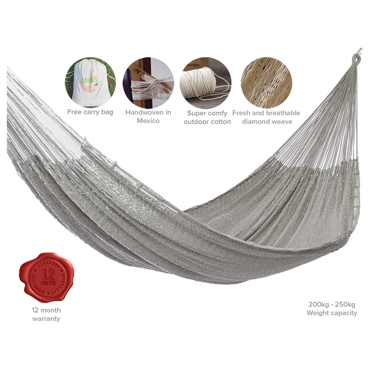 • Genuine, handwoven in Mexico supporting the tradition of weaving hammocks from home.