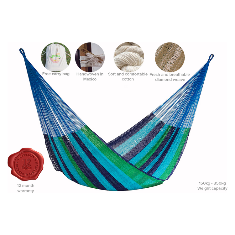 - Genuine, handwoven in Mexico supporting the tradition of weaving hammocks from home.
