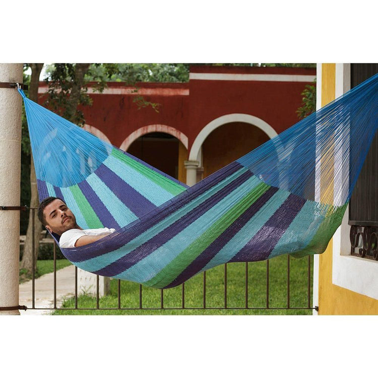 Kick back and relax for a very sweet nap in this gorgeous Mayan Legacy hammock. Hand woven from 100% cotton rope in a variety of colours that will brighten up any patio or porch area. Just add a pair of straps or a frame and enjoy.