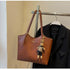 Elegant Black PU Leather Tote Bag with Bear Keychain