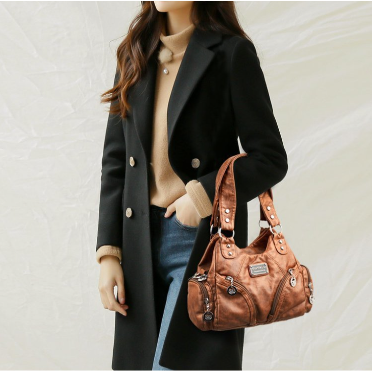 Embrace a retro-chic aesthetic with our vintage soft leather biker bag. This versatile handbag can be worn as a shoulder bag, crossbody bag, or carried as a tote, offering multiple styling options to suit your needs.