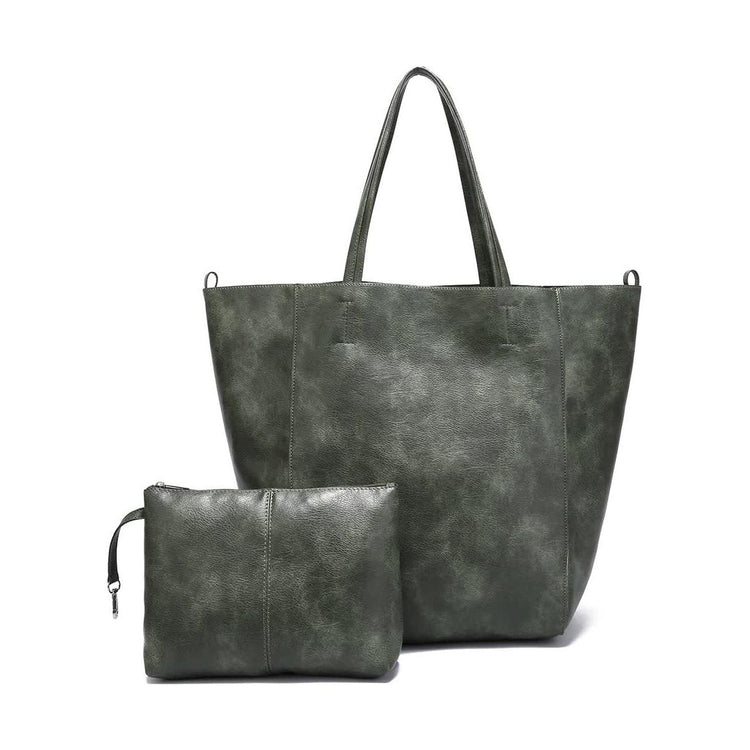 Grey-green Classic Large PU Leather Bag with Inner Pouch - Elegant and Functional
