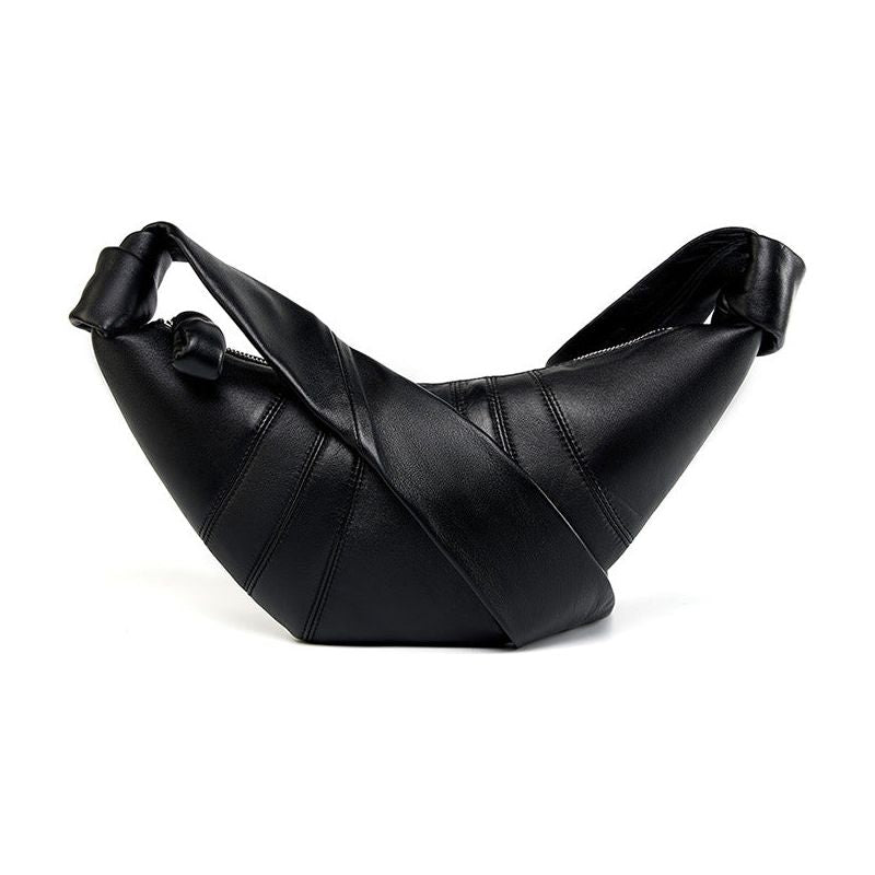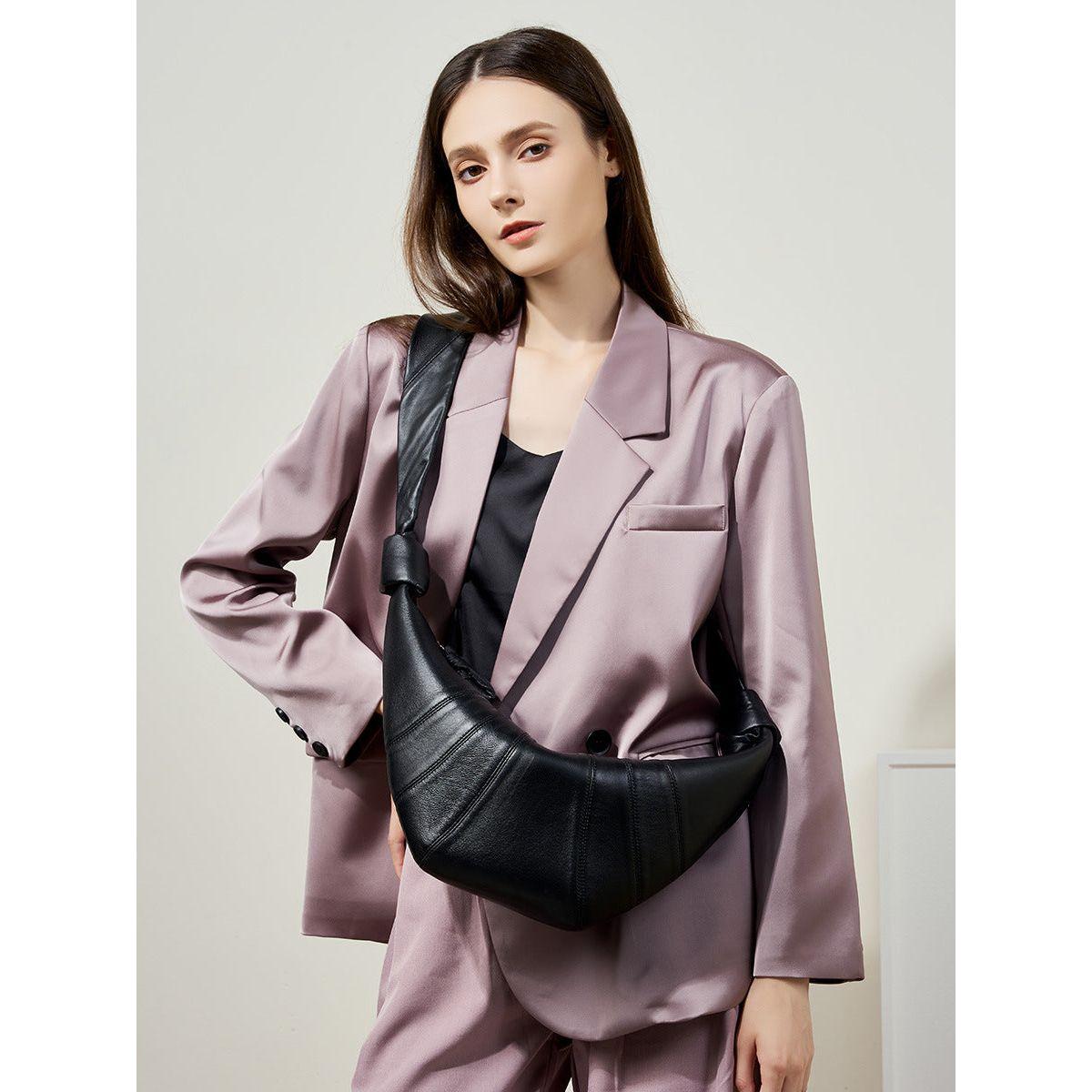 Middle Black Stylish Croissant Crossbody Bag - Elegant Horn-Shaped Design with Lazy Chic Vibes