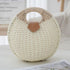 Handwoven Straw Circle Bag - Summer Beach Handbag with Round Handles