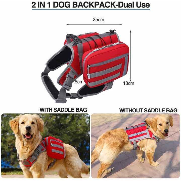 - Spacious Saddle Bags: Dual storage compartments provide ample space for pet supplies like food, water, toys, and waste bags.