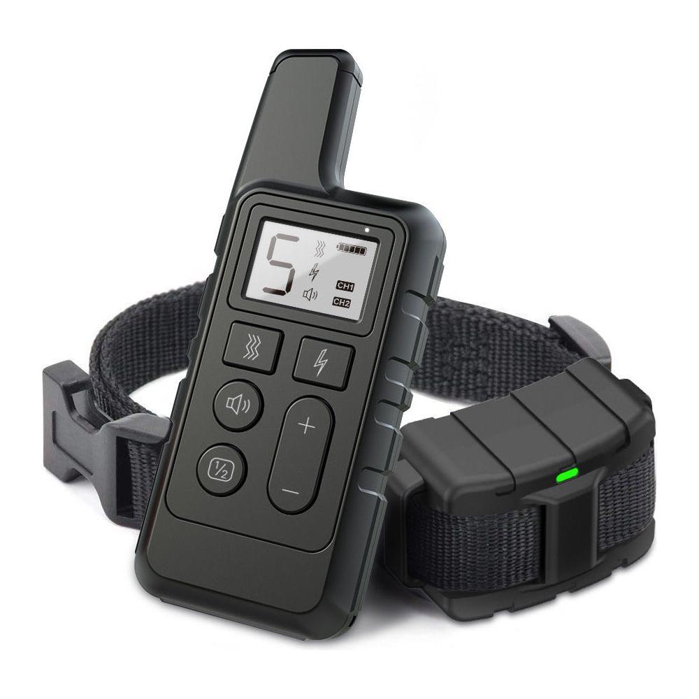 This remote dog training collar is designed to improve your dog’s behavior with customizable settings for shock, vibration, and sound. Suitable for small to large dogs, it offers adjustable levels of control and a range of features including a rechargeable and waterproof design. The two-channel system allows you to control two dogs at once, making it a versatile tool for training multiple pets.
