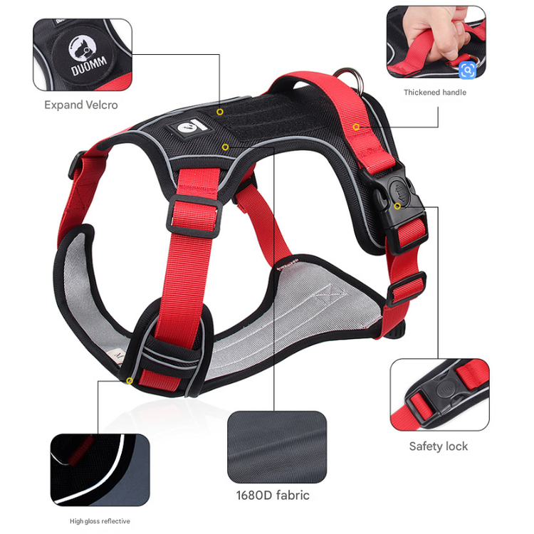 • Enhanced Night-Time Visibility: Bright reflective stitching is woven into the harness and the matching leash, ensuring your dog remains visible and safe in low-light conditions.