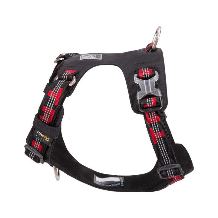 Ultralight No Pull Dog harness.  Keep your Dog secure in this super lightweight harness. Made of Cordura fabric and Microfiber Suede leather lining. High density nylon webbing with embroidery on it which is softer than the normal nylon webbing. Duraflex PC buckle on both sides with a large loading capacity to greatly improve tensile strength. Lightweight Aviation aluminum fittings on the neck strap, a new way to put on and take off. Available in 3 different colours.