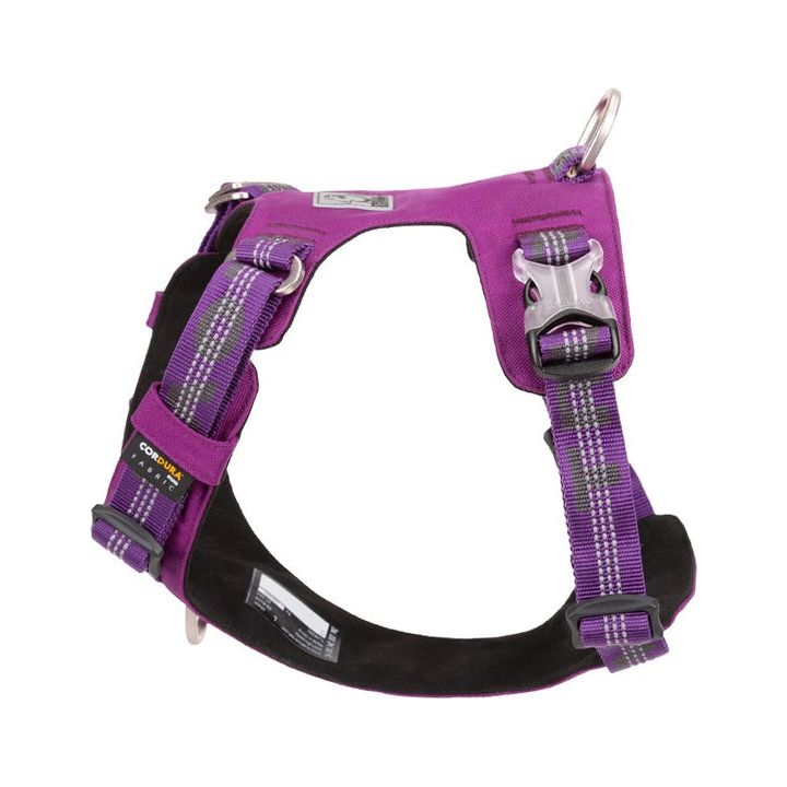 Ultralight No Pull Dog harness. Keep your Dog secure in this super lightweight harness. Made of Cordura fabric and Microfiber Suede leather lining. High density nylon webbing with embroidery on it which is softer than the normal nylon webbing. Duraflex PC buckle on both sides with a large loading capacity to greatly improve tensile strength. Lightweight Aviation aluminum fittings on the neck strap, a new way to put on and take off. Available in 3 different colours.