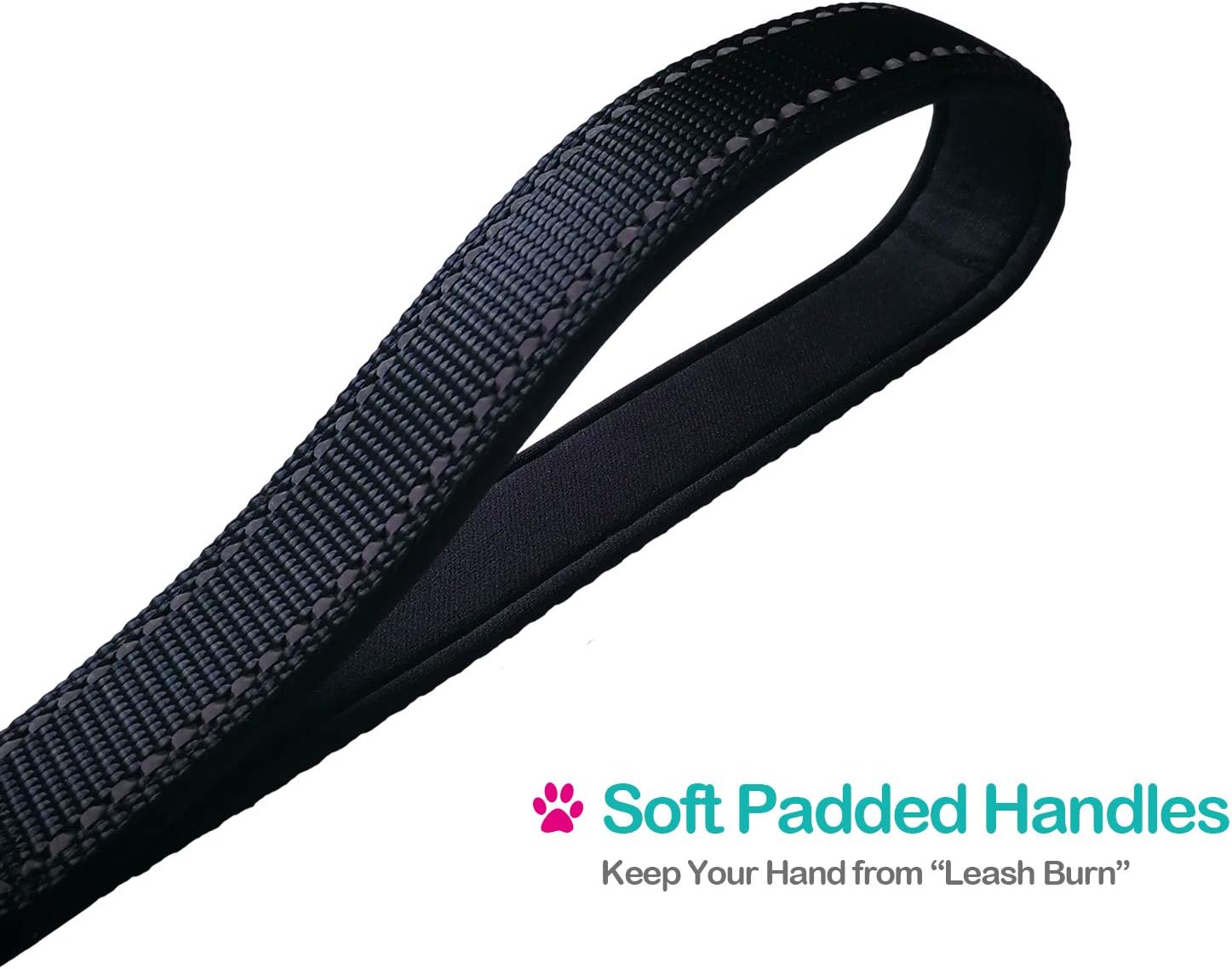 COMFORTABLE PADDED HANDDLE - the short handles leash has soft cushion pad on the inside grip which makes it really comfortable to hold onto, the cushioned padded handles helps put less strain on your hand when your dog pulls.
