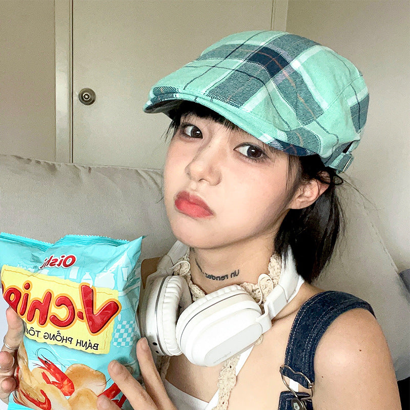 Retro Plaid Flat Cap - Lightweight & Adjustable Ivy Style Hat