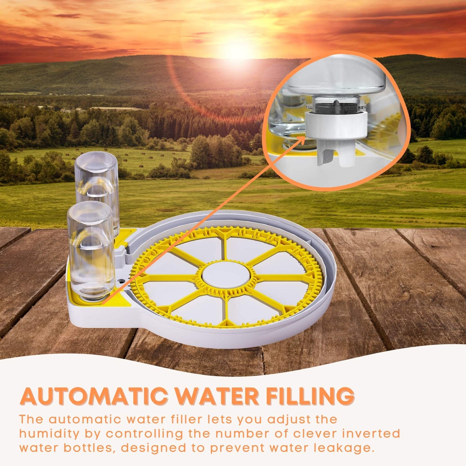 • Automatic Water Filling: The automatic water filler lets you adjust the humidity by controlling the number of clever inverted water bottles, designed to prevent water leakage.